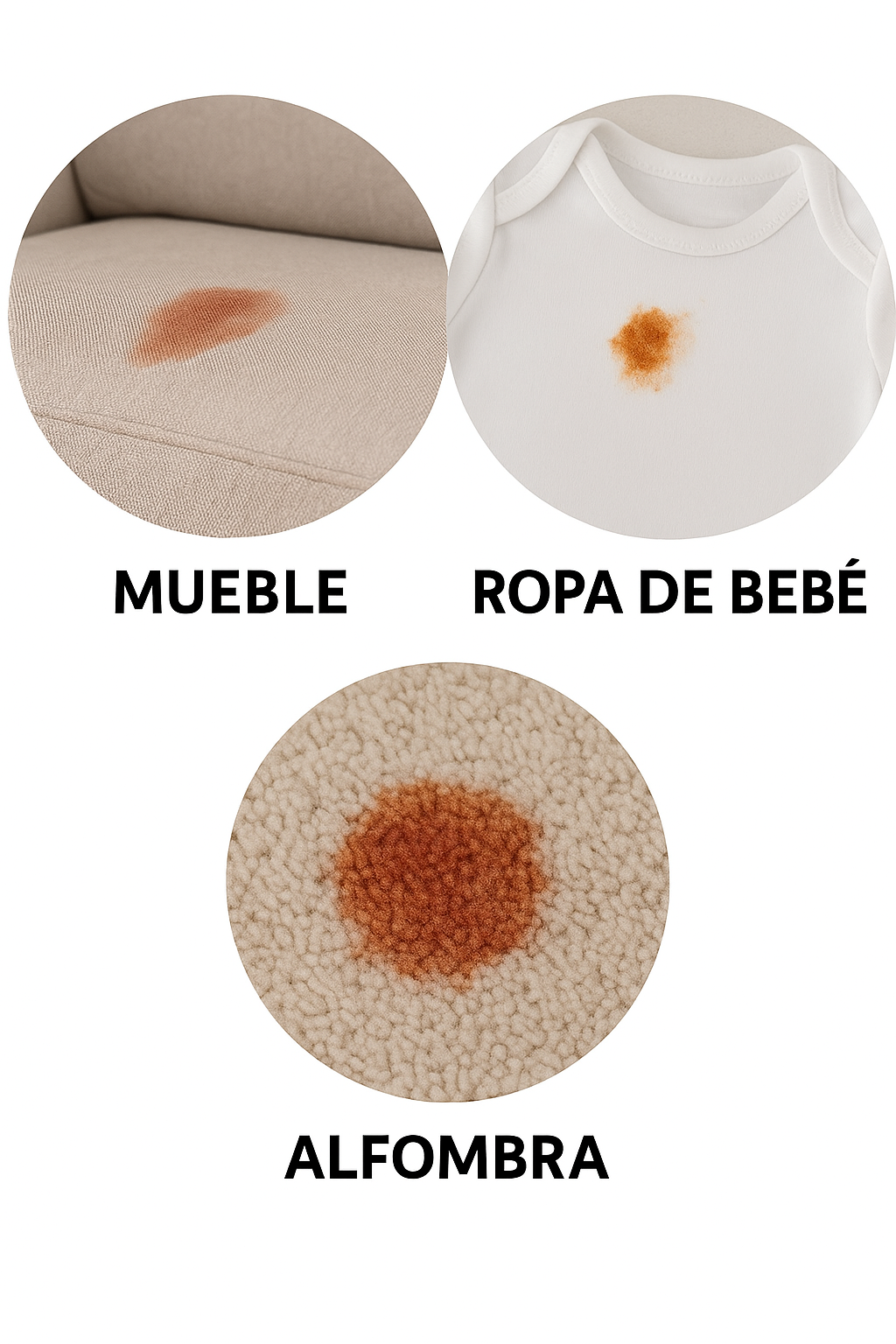 Elimina comida de bebé, jugos, fórmula, ketchup, café, grasa, lodo, salsa, etc. dejando la tela limpia sin decolorarla ni dañarla.